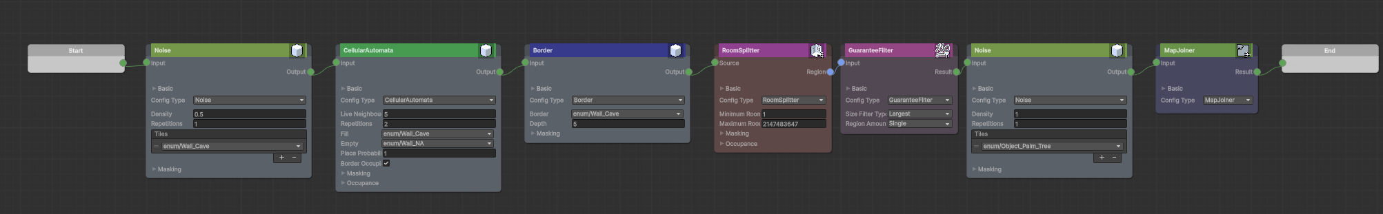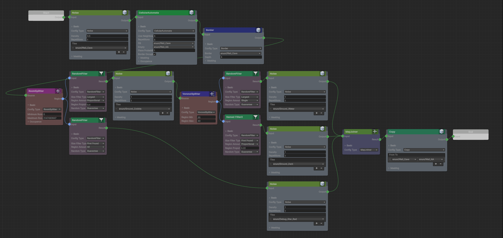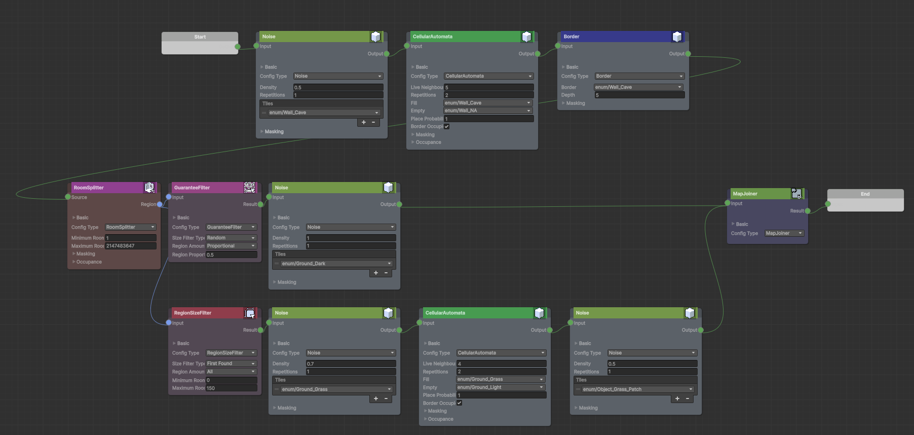 So it might sound complicated, but the high-level design changes are actually really simple. I wanted to take the linear stack based config system and transition to a graph based config system. This is would allow for multiple branching paths of generation and enable 'regionality' in generation most importantly.