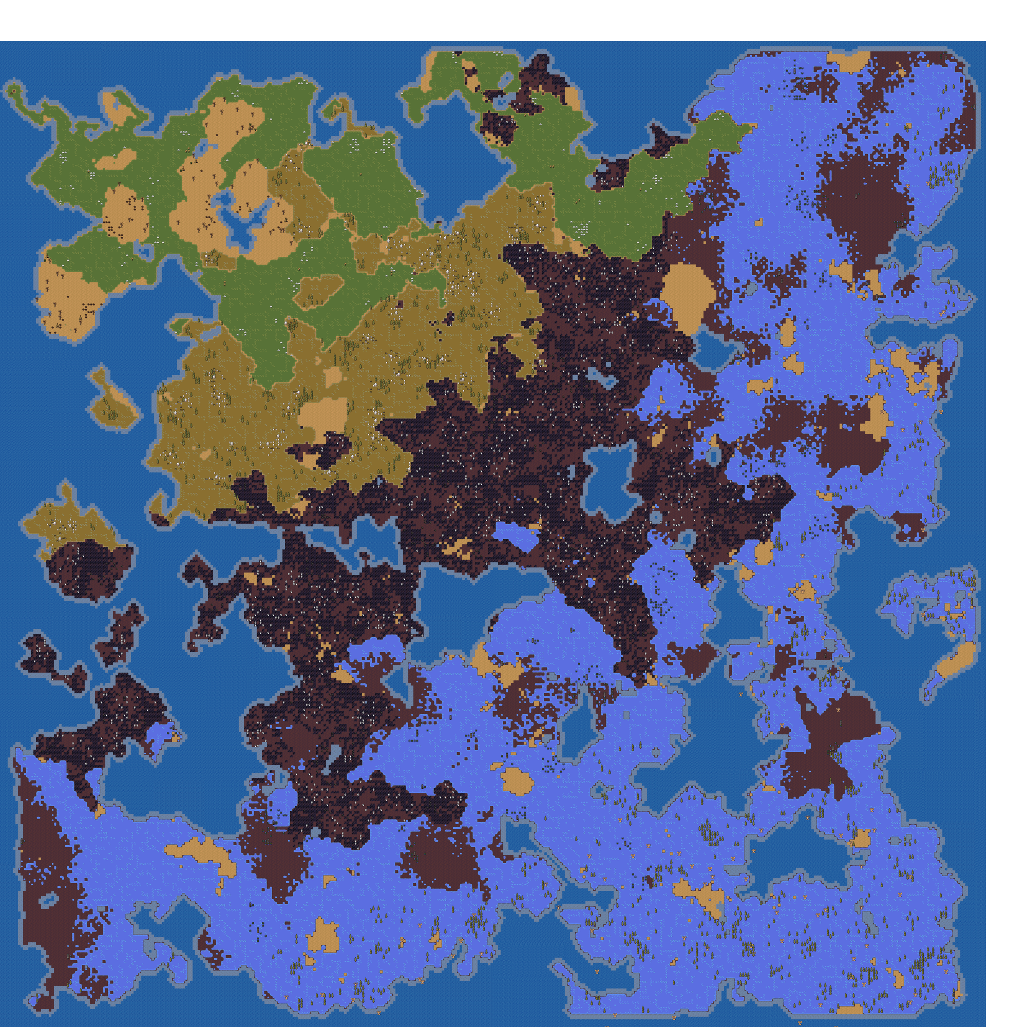 So that sounds pretty good, so what's the issue? The answer is pretty straightforward, it could not generate 'regions'. I didn't realize it when I was initially making the random generator, but regions are insanely important. Just think about how regional terrain is in real-life, seas, hills, mountains, beaches, cliffs, forests, jungles, swamps, etc. Imagine you just had only one of those, and that was basically what my generator could handle. You could make any one of those 'biomes,' but only one. So, I don't think its an overstatement to say that a random generator without regions is missing the core feature that makes maps interesting or engaging the first place. Now the technical reason why I couldn't create regions was I was using a stacked based config system, that had each generator resolved sequentially in order. This meant there was no way to split off a section of the map and run different generators on that section. So in order to make a good random generator that could make interesting maps, I had to design a new system that could do this.
